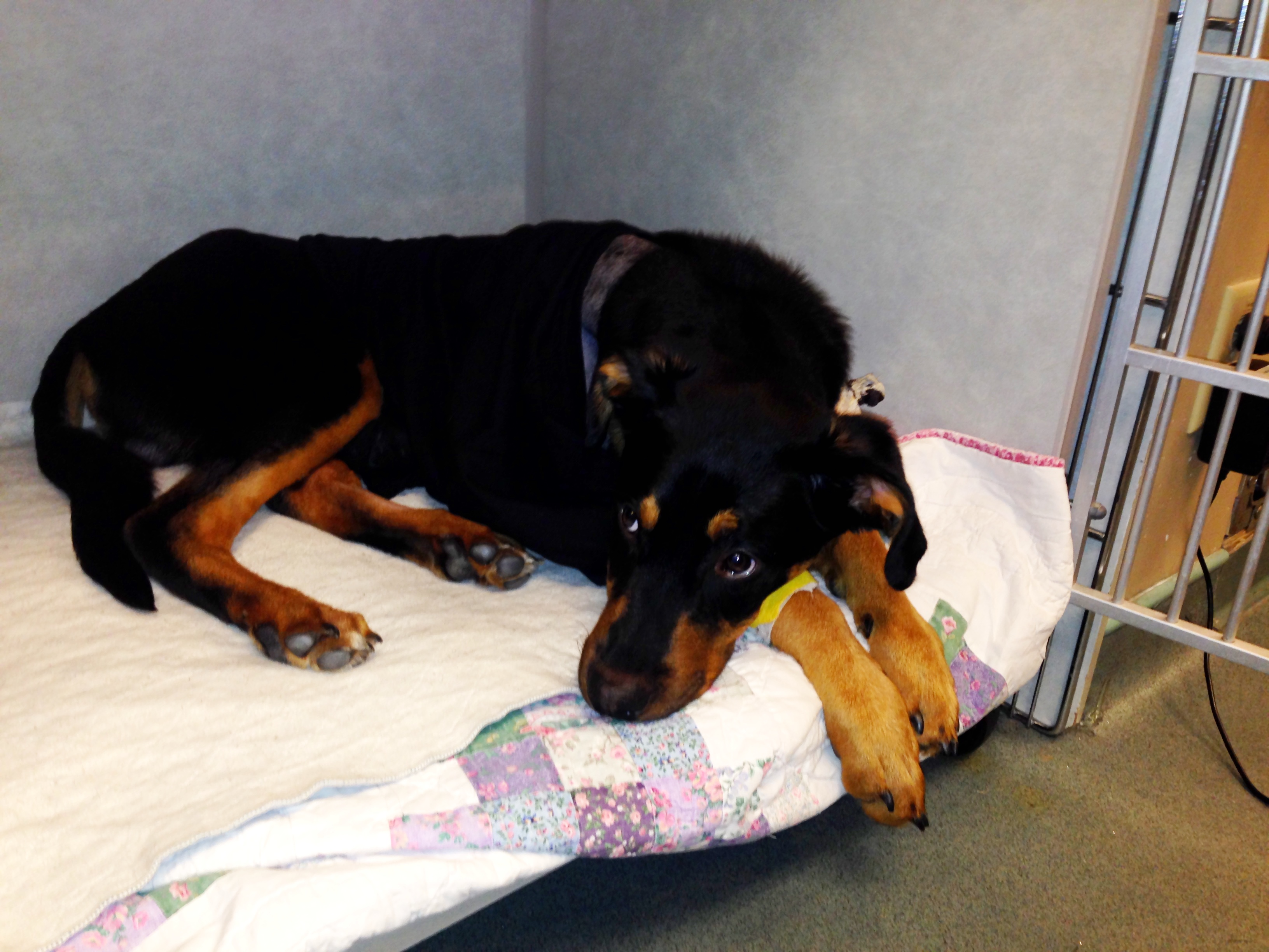 Within a few hours of the surgery, Taylor was up and eating and even wagging his tail. “The next day he was looking to go outside and resume normal activity,” said King. “He certainly bounced back a lot more quick than a person would after a similar procedure.”