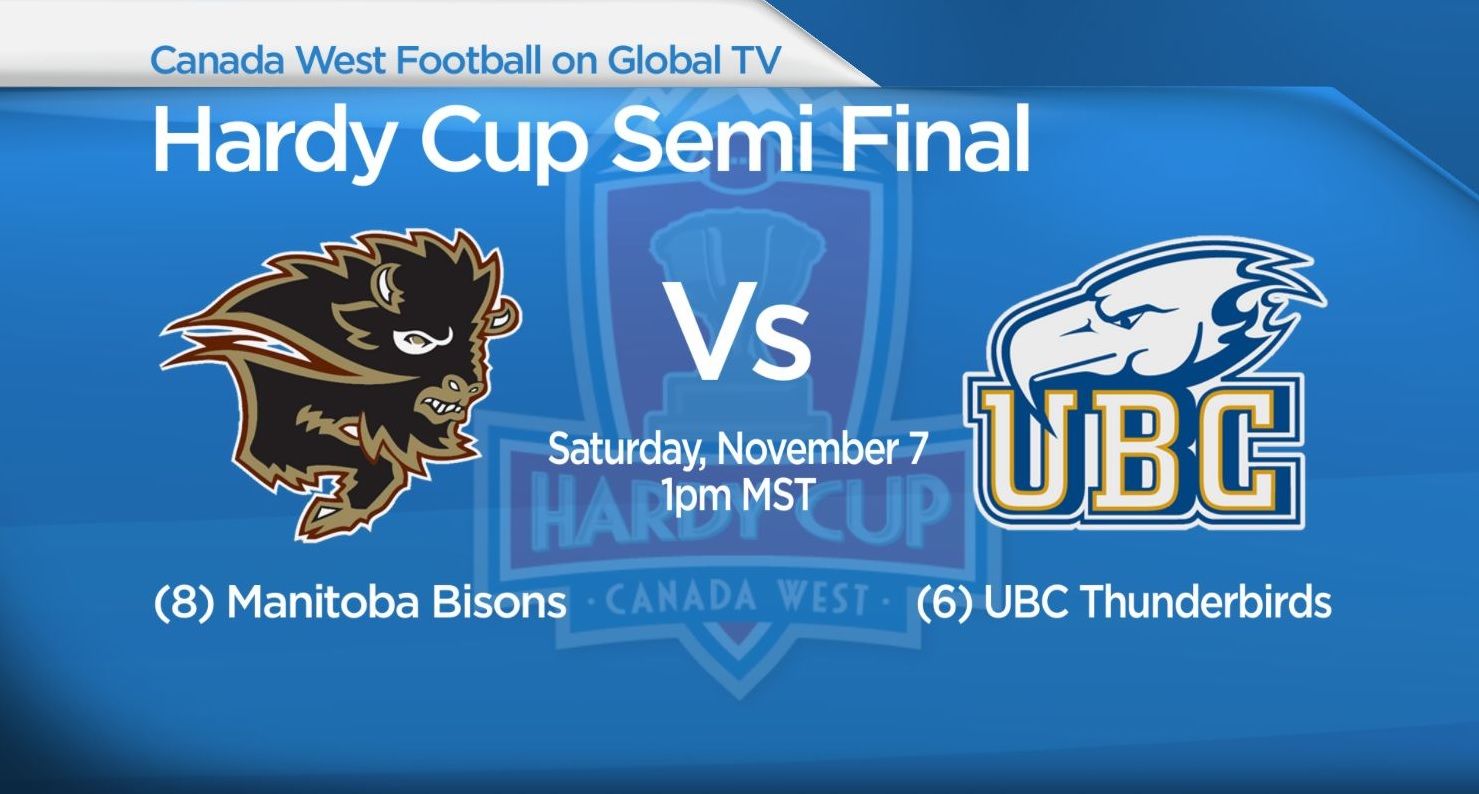 Saturday’s semi final will see the defending Hardy Cup Champion (8) Manitoba Bisons visit the (6) UBC Thunderbirds.