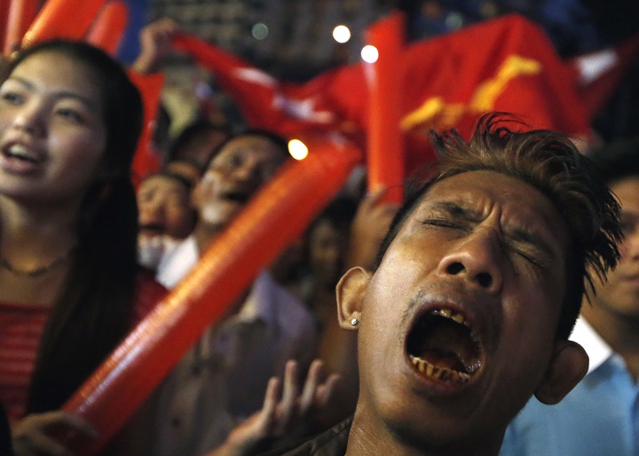 Vote counting began immediately, and hundreds of supporters gathered under umbrellas at the opposition National League for Democracy party’s office hoping to see results. But party functionaries announced that results would not be available until Monday, and that the 70-year-old Suu Kyi would not address the crowd as expected, urging the crowds to return the next day.