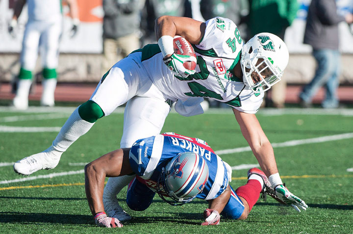 MONTREAL – What could have been a dud of a finale to the 2015 CFL season ended with a drama-filled final quarter. A potential rare win by a Canadian starting quarterback was wiped out by a furious fourth-quarter comeback as the Saskatchewan Roughriders salvaged some pride with a 30-24 overtime victory over the Montreal Alouettes on Sunday.