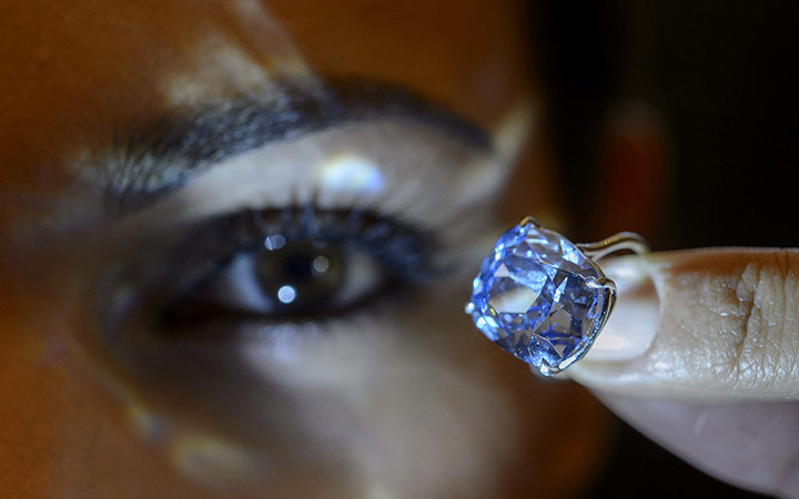 The polished blue gem was cut from a 29.6-carat diamond discovered last year in South Africa’s Cullinan mine, which also yielded the 530-carat Star of Africa blue diamond that is part of the British crown jewels, and the Smithsonian Institution’s “Blue Heart” discovered in 1908.