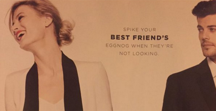“Spike your best friend’s eggnog when they’re not looking,” reads the text accompanying the photo of the two models.
