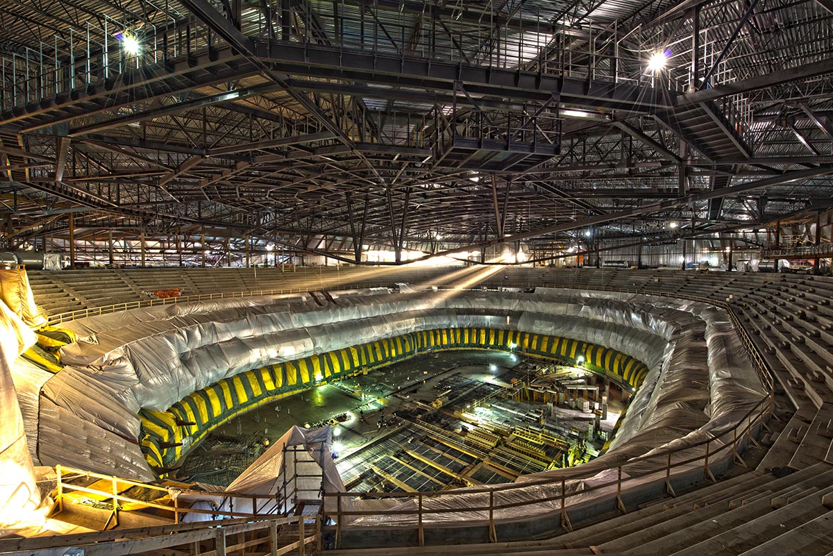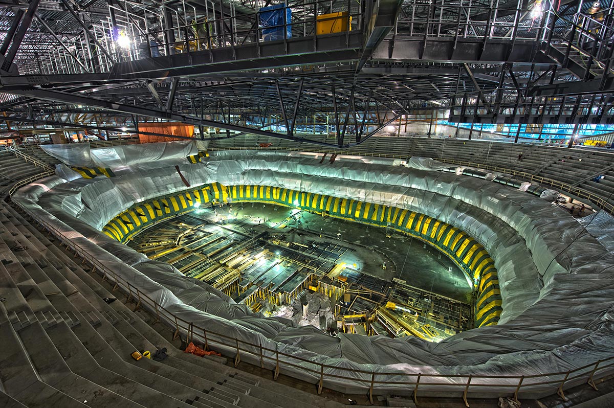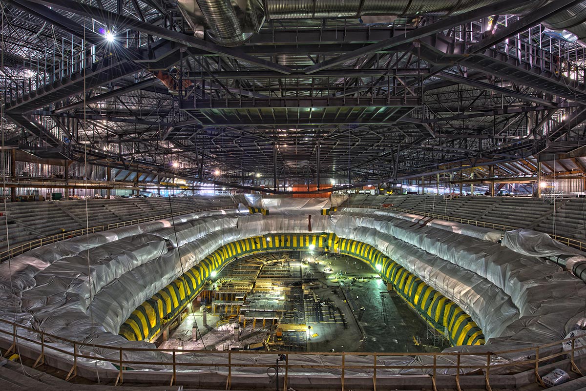 All the steel work has been completed and the roof is now enclosed on the 18,500-seat arena.
