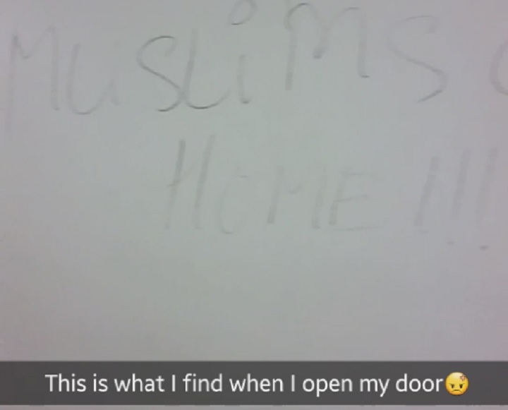 Dadabhai said the words “Muslims go home!!! We do not what you here!” were written across from her front door.