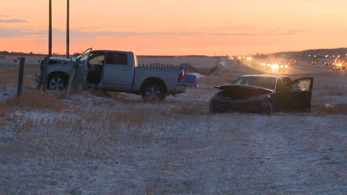 The collision happened on Highway 1 just west of Range Road 33, near Calaway Park.
