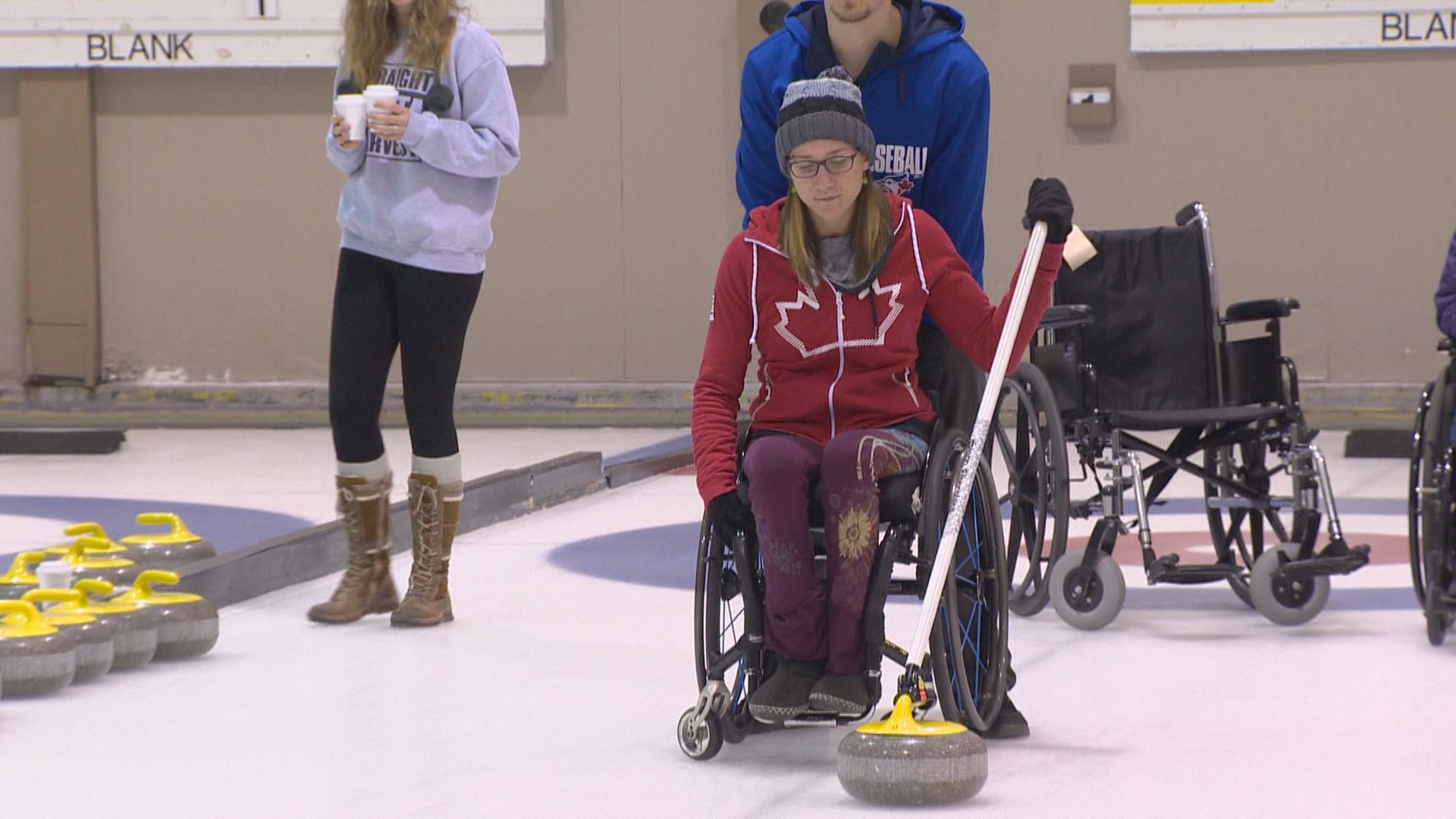 Aside from shooting in a wheelchair, the major difference between this and regular curling is that no one is sweeping to guide the rock.