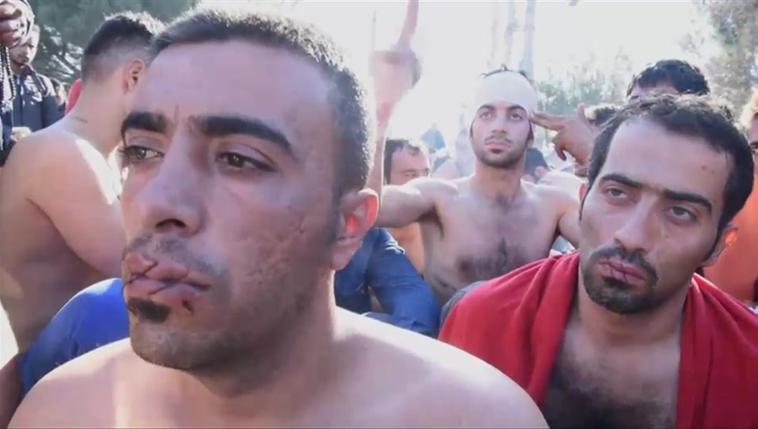 Six Iranian migrants have sewn their mouths shut during a protest near the village of Idomeni at the Greek-Macedonia border.