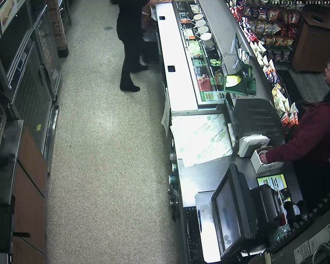 While he was at the counter, the man tried to open a poppy donation box. But as the clerk was approaching, he made up an excuse and went to a Subway sandwich shop attached to the store.