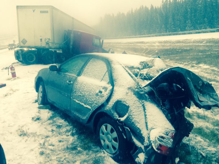 The following pictures were sent to Global News by a witness of the crash scene. RCMP confirmed the descriptions of the vehicles involved in the collision.