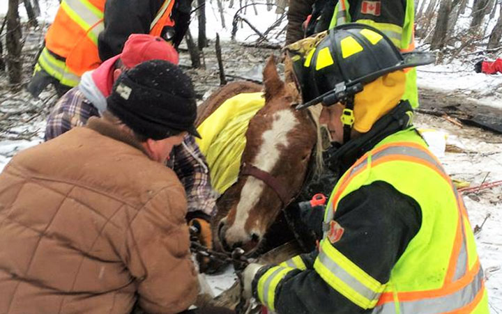 With the help of the fire department, police, neighbours and the owners of the horses, the remaining four horses were removed from the freezing water and quickly covered with blankets. Three of those horses survived and were taken to a barn to warm up.