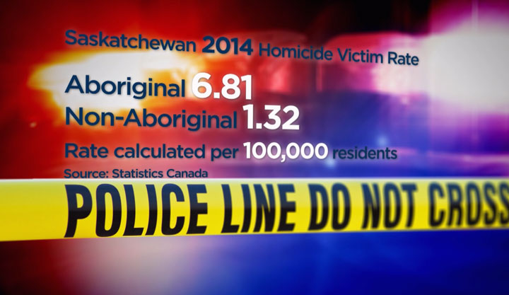 Statistics Canada released a report Tuesday, highlighting the trend. In 2014, Saskatchewan had 24 homicide victims, 12 of whom were aboriginal. When calculated per 100,000 residents, the aboriginal homicide victim rate was 6.81, compared to 1.32 for non-aboriginals.