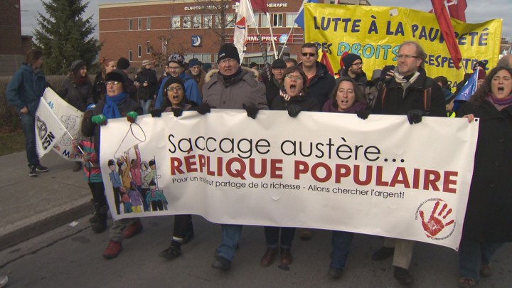 “Once again, we are in the street to tell the government that we are strongly opposed to its austerity policies,” said Dominique Daigneault, spokesperson for the Coalition. “The government has to stop those cuts.”