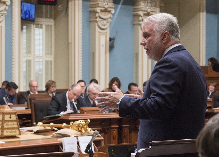 Couillard touted his government’s plan to reduce greenhouse gas emissions by more than 30 per cent from 1990 levels and stated his government has brought back political stability to the province.