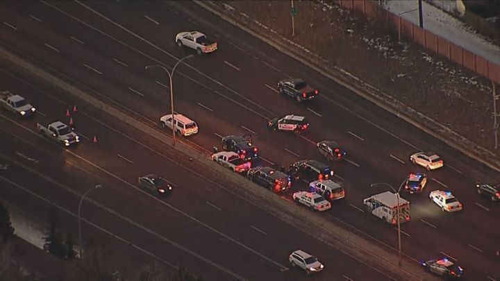 Air 1 followed the truck east on the Yellowhead and into Strathcona County. The truck then headed back into Edmonton where police officers on the ground threw down a spike belt in hopes of stopping the vehicle in an industrial area in southeast Edmonton.