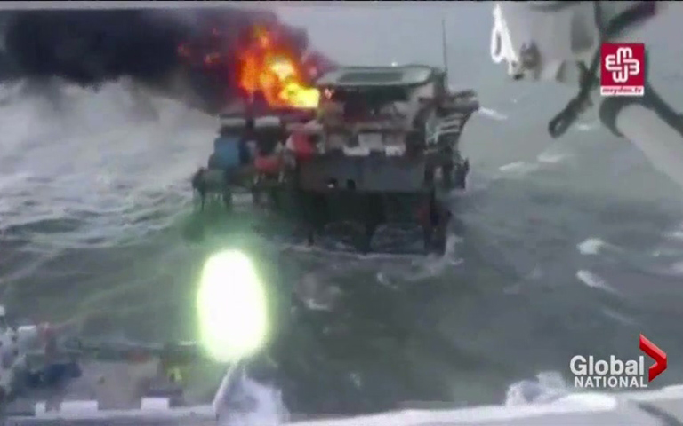 About 10:45 p.m. Friday, a hook holding one of the lifeboats popped open and the boat fell into the sea, the statement said, adding that a nearby ship was able to rescue three workers from that lifeboat and retrieve the body of one who died. The workers in the other lifeboat were rescued Saturday, it said.