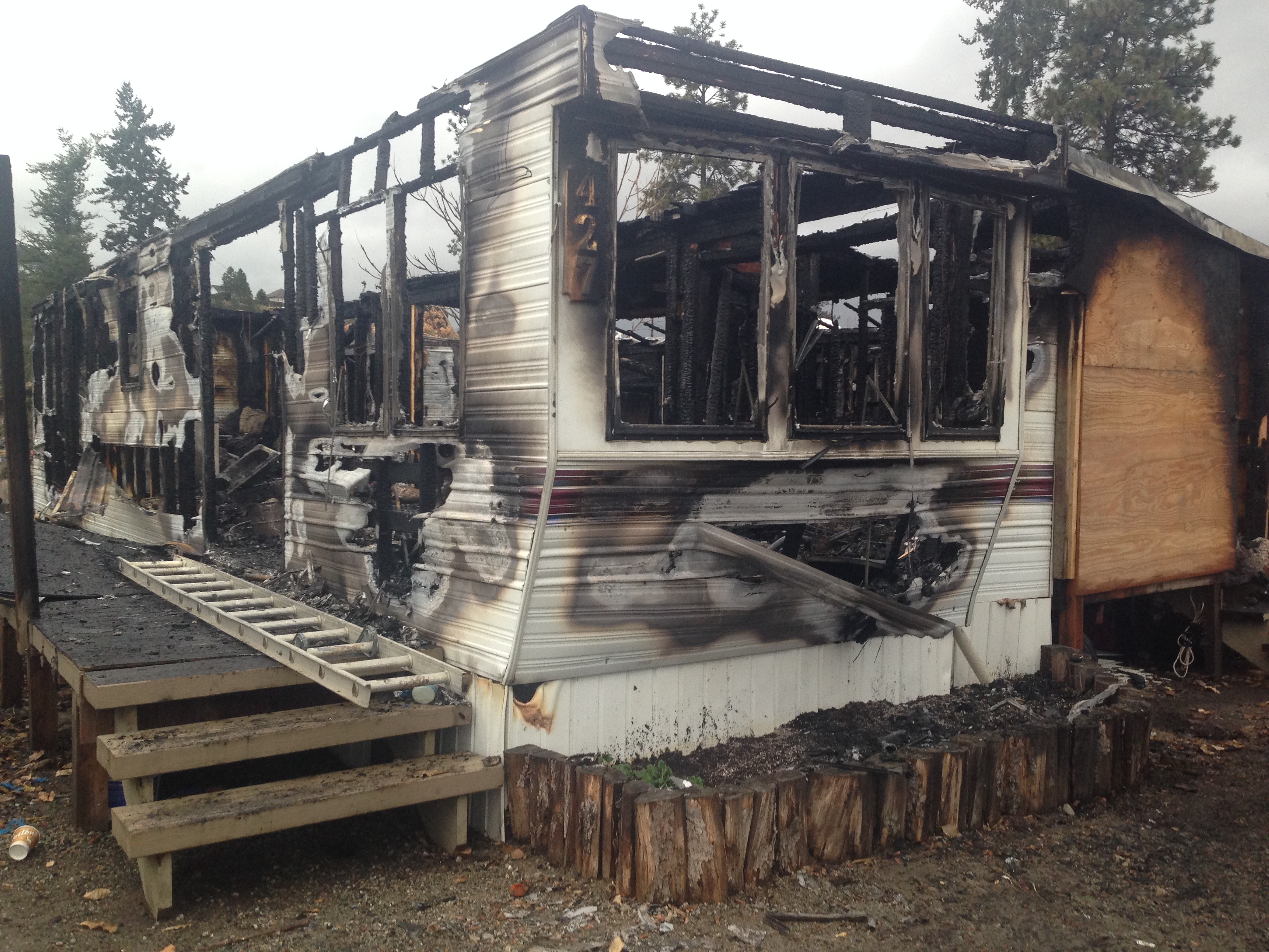 “There are two other trailers parked beside this one, both of them were damaged from the radiant heat, both of them caught fire as well so they actually had three structures burning even though they were small structures and they were easily put out,” says Spalding.