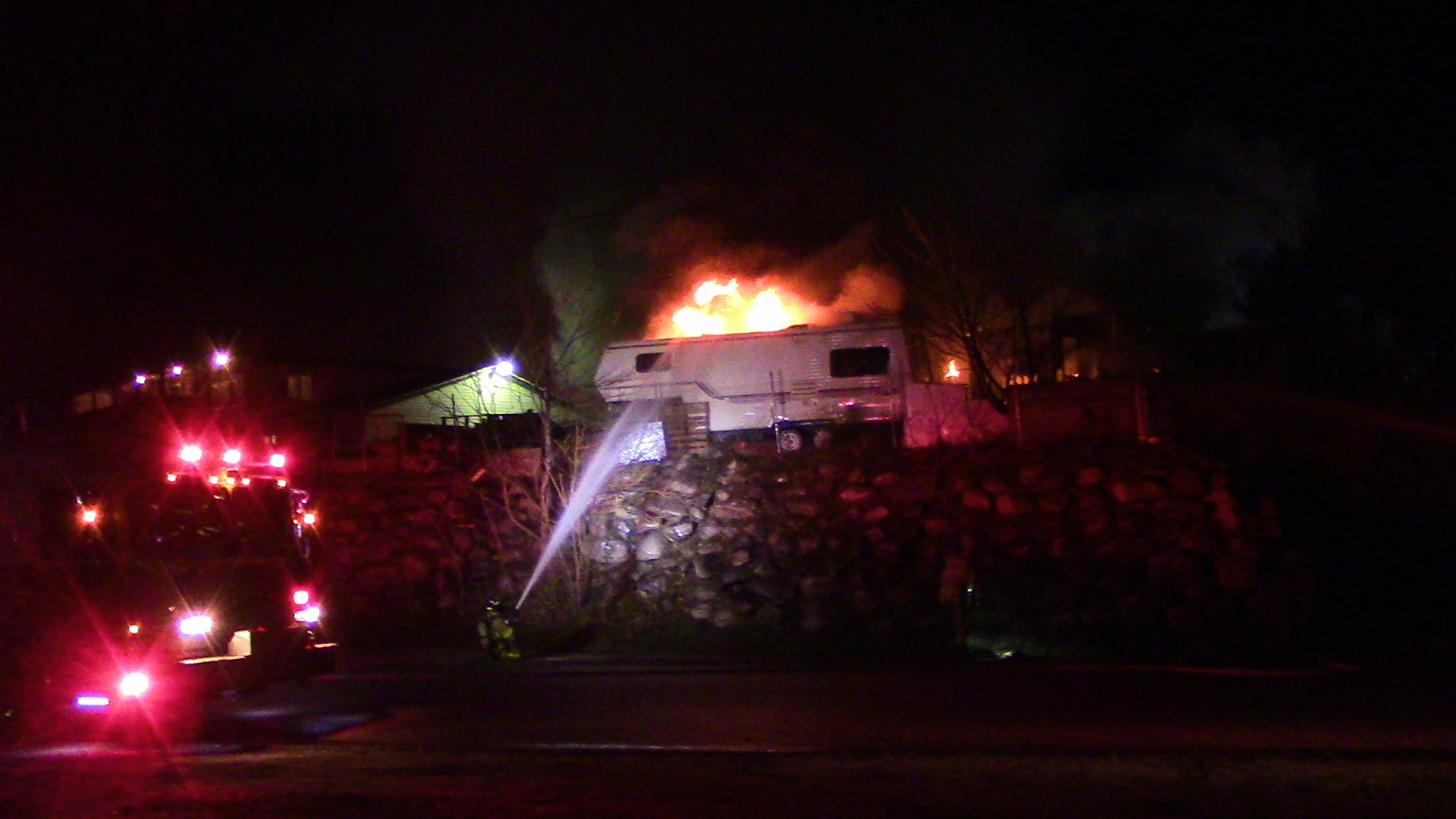 “They arrived on scene and found heavy fire on the back of the commercial property, it’s a couple of mobile home trailers that people are living in,” says Deputy Fire Chief Dave Spalding.