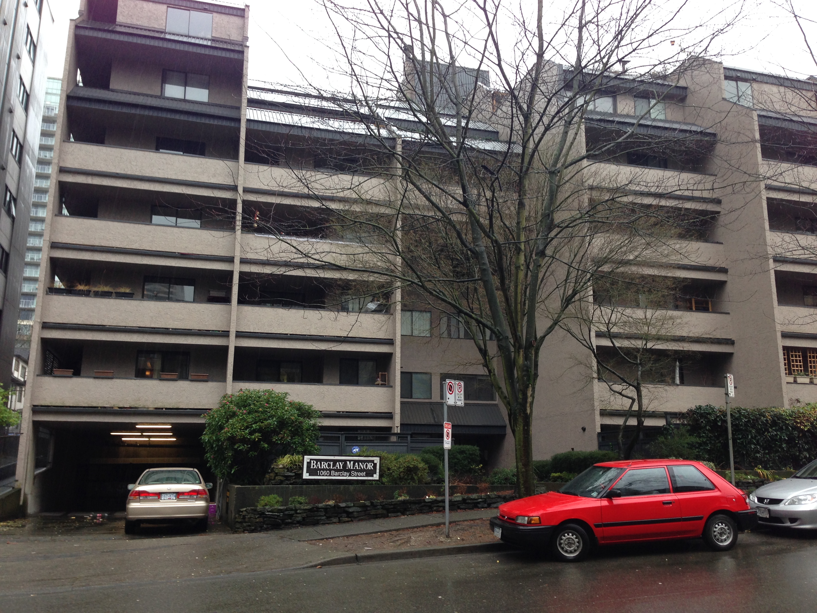 The building on 1060 Barclay Street, Barclay Manor, will be purchased by Bosa Properties, who plan on tearing down the seven-storey apartment and replacing it with a highrise.