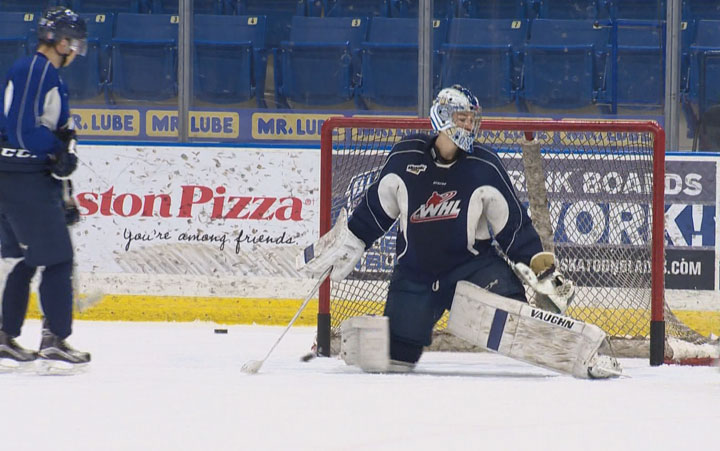 “He’s a big goalie, he covers a lot of net and he moves well for a big guy … and you want to see him in a game situation and I think he’s a pretty competitive guy. Talking to his previous coach and he really seems to fit in well with the guys from the get-go here,” said Woods.