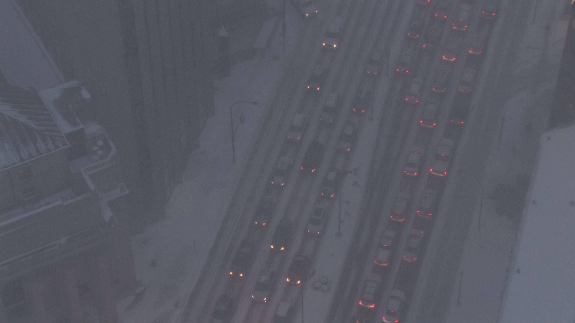 WINNIPEG — The blast of winter is creating bumper to bumper traffic through downtown Winnipeg.