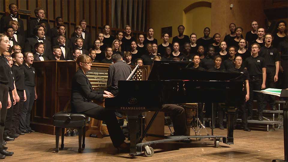 At the choir’s concert Thursday night, Hawley accompanied the students on the piano. It was the first time she had heard her composition performed live. After the show, she said that she’s been overwhelmed by the response the song has received online.