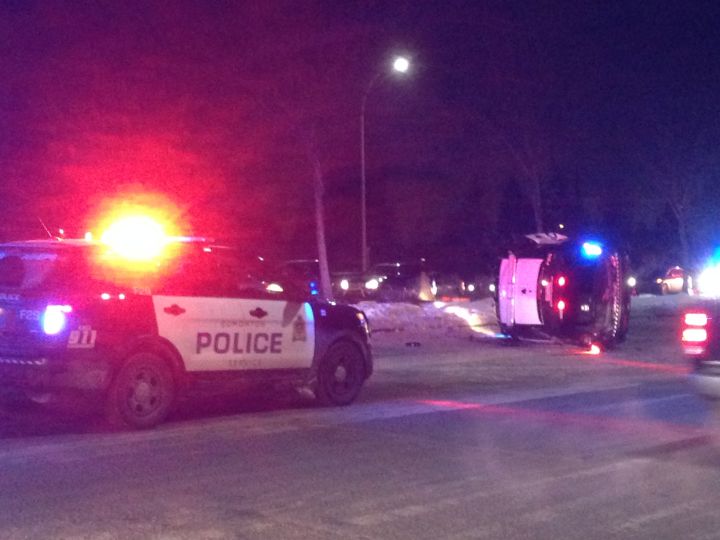 Officers are on scene investigating an incident which ended with a police cruiser on its side.