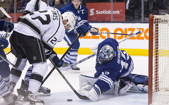 Five minutes into the second, Bernier kept Toronto ahead with a Curtis Joseph-esque pad save to rob Marian Gaborik, who was responsible for several quality scoring chances. Later in the period, defenceman Roman Polak gave Bernier some help as he dived to knock the puck away from Kings captain Dustin Brown.