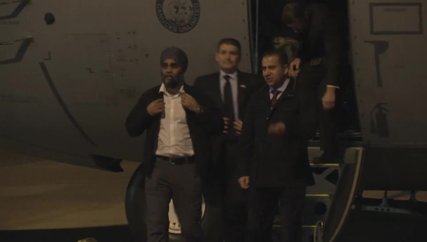 A spokeswoman for Sajjan says the purpose of the trip was to meet with defence and security officials in the region and visit Canadian military personnel.