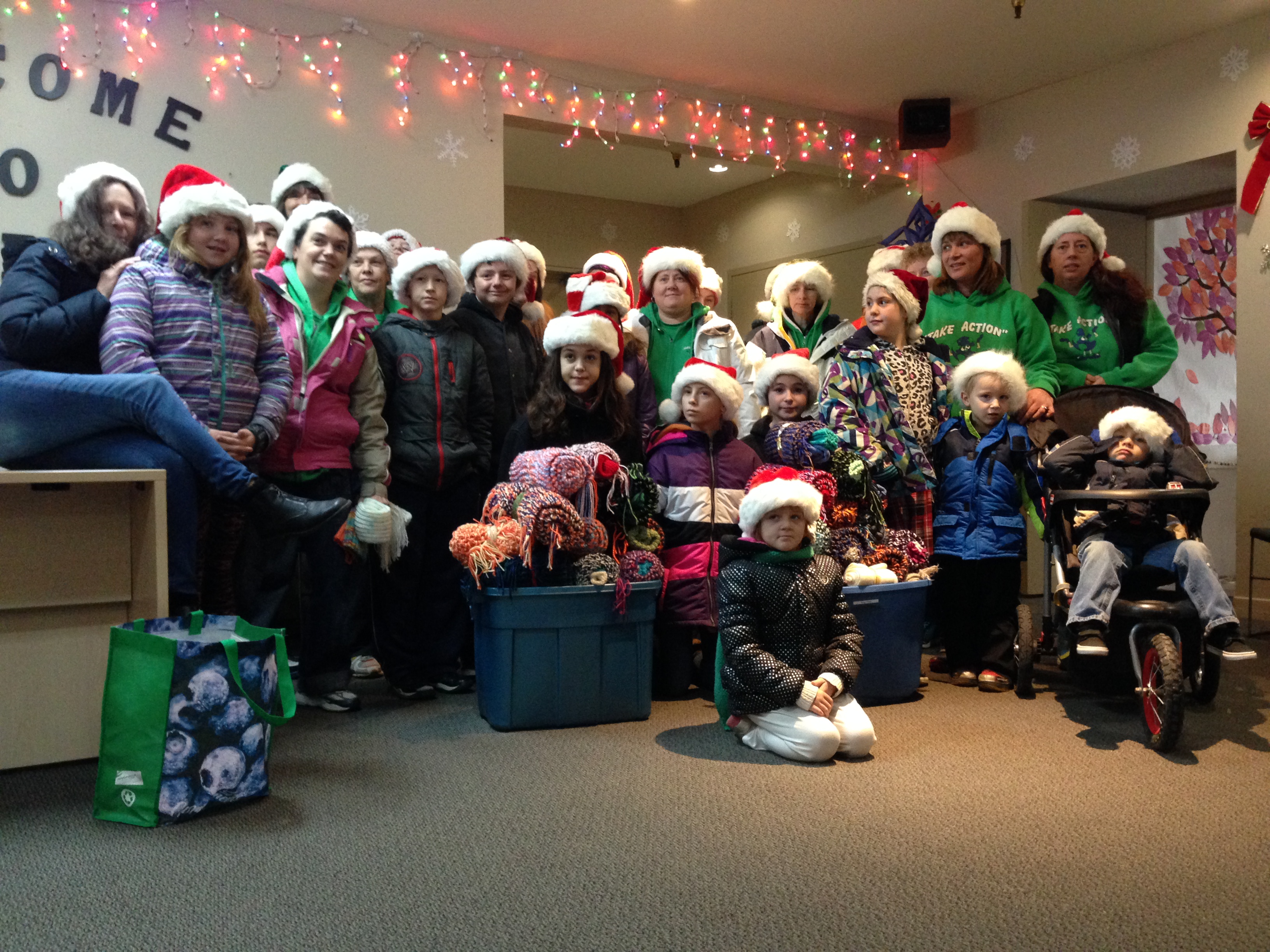 A group of about 20 children and members of the Take Action Society delivered homemade scarves, hats and mittens to members of their community.