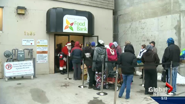 The lineups always seem to be longer at this time of year and that includes at the local food banks. Hundreds lined up at the Kelowna food bank today to receive a Christmas hamper. As Kelly Hayes reports, while most where there to receive, others were there to give.