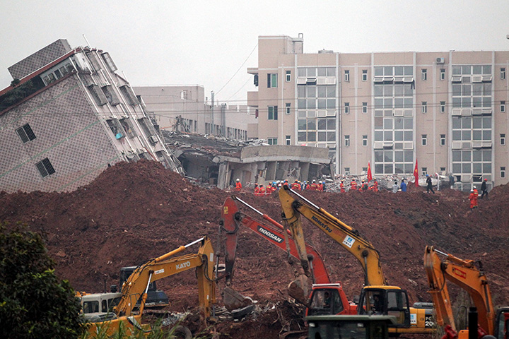 State media reported that the New Guangming District government identified problems with the mountain of soil months earlier.