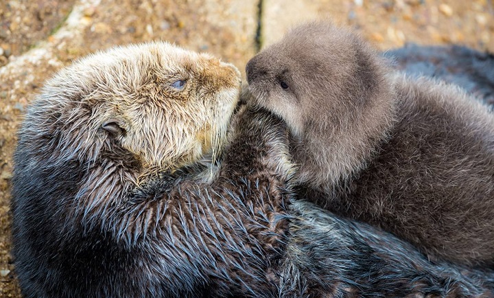 The Monterey Bay Aquarium posted news of the birth online this weekend, along with adorable photos of the fuzzy brown pup playing with mom.