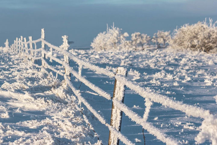 Hoar frost occurs when soft ice crystals form on any object that has cooled below the freezing mark. Water vapour in the below-freezing air condenses directly to ice when cooled on contact with cool surfaces.