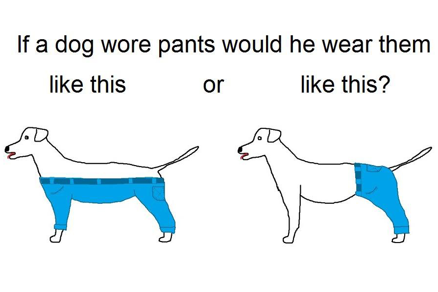Utopian Raspberry – Modern Oasis Machine‘s Facebook post asked, if a dog wore pants, would they cover just his hind legs, or all four legs?