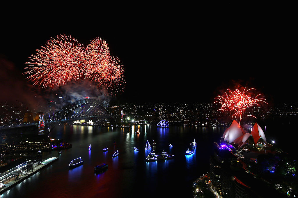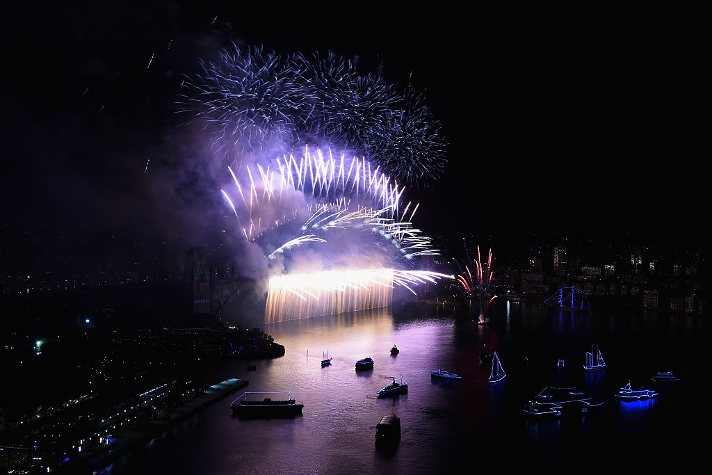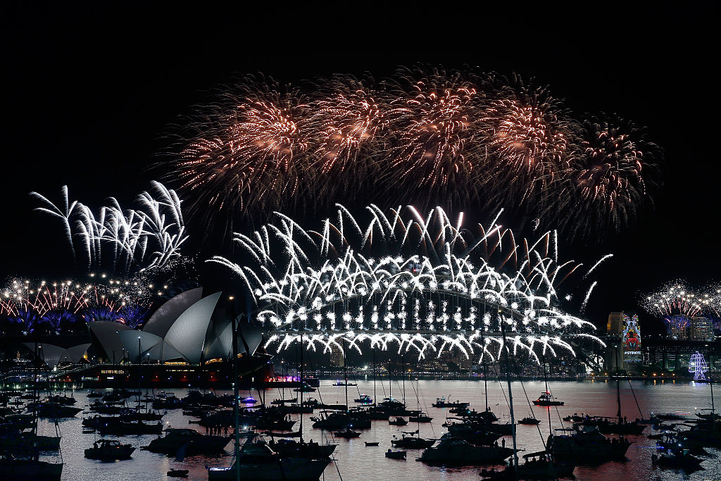 Simultaneous fireworks displays erupted along Sydney’s famed harbour, where people crowded onto balconies, into waterside parks and onto boats as they jockeyed for the best view, clinking glasses and whooping with joy as the first pyrotechnics exploded.