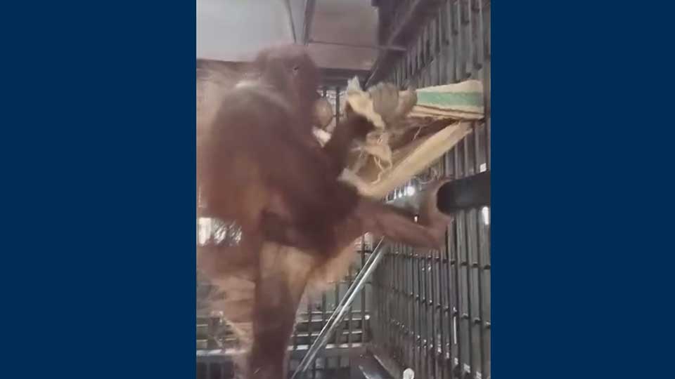 Video of the clever orangutan – turned lounging enthusiast – showed Nemo tie a sheet or towel to cell bars to create the hammock. He actually created two hammocks because the first one appeared to lack enough headroom.