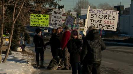 “We are here because this is the one and only pet store left in Calgary selling puppies,” said Wanda Terry, a protester.