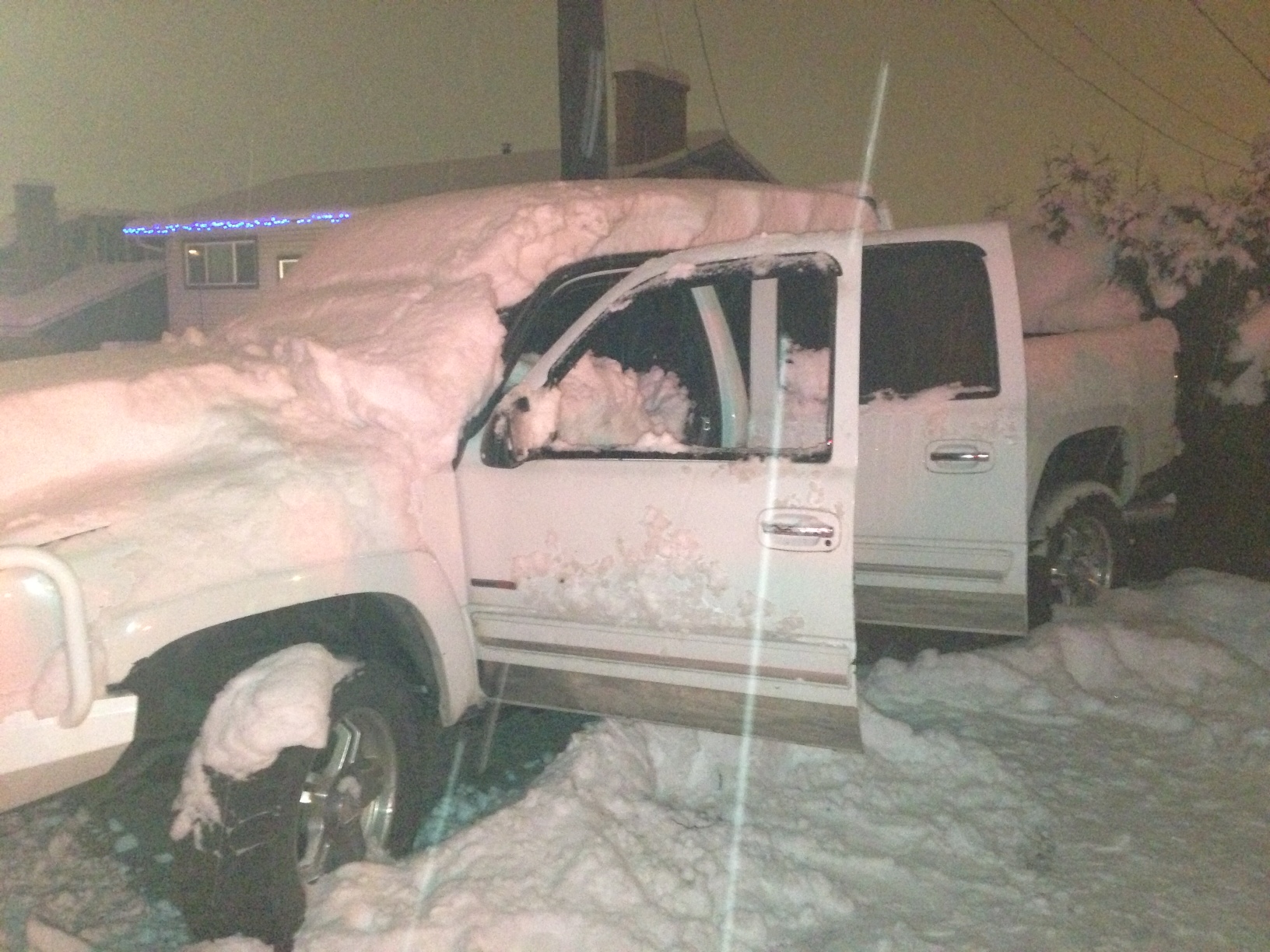 Police say a driver who saw the blaze used snow to put out the flames. RCMP describe the damage as moderate.