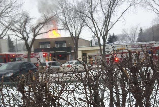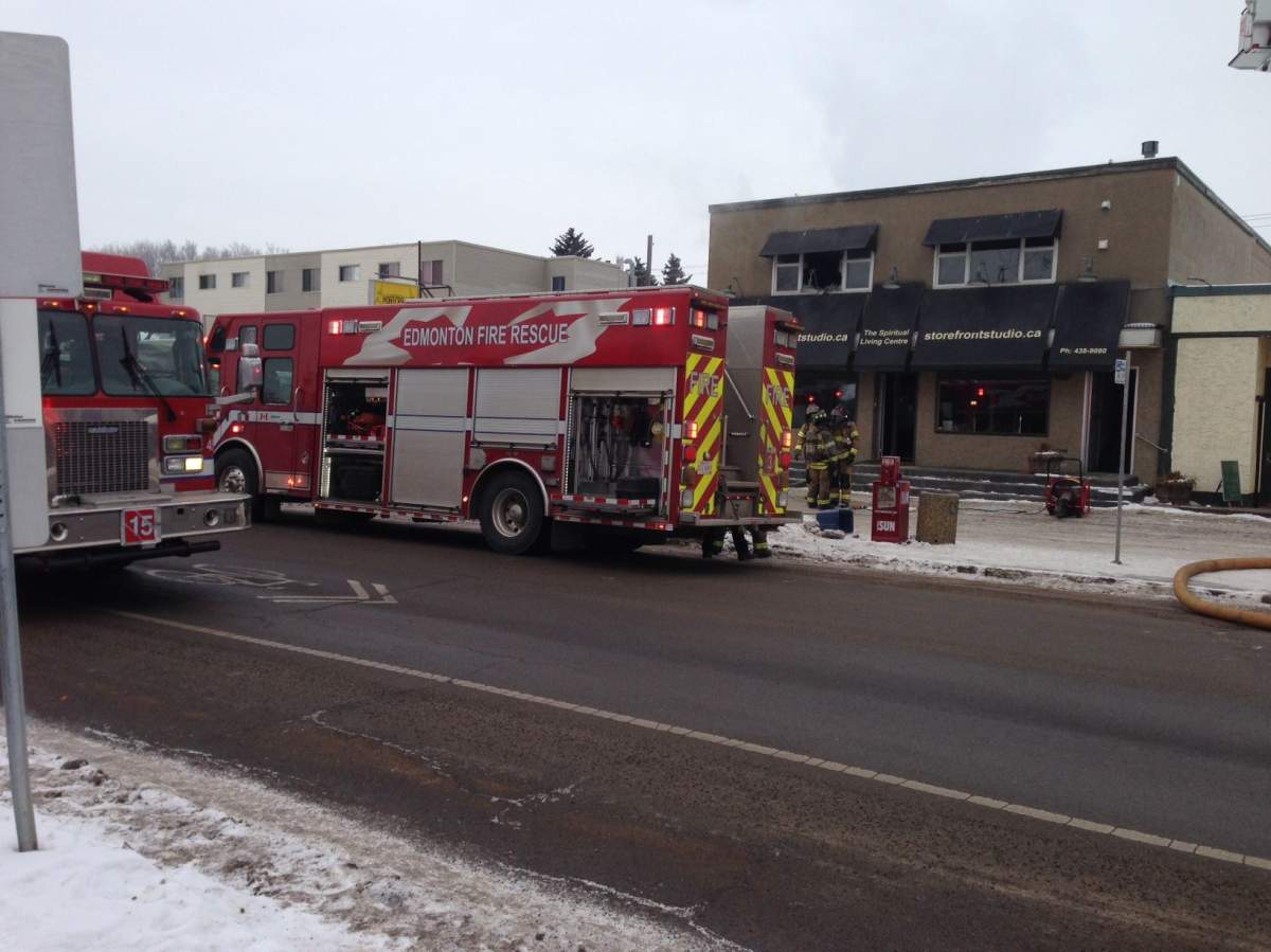 EDMONTON – Flames could be seen coming from a two-storey building in the area of 106 Street and 63 Avenue late Wednesday morning.