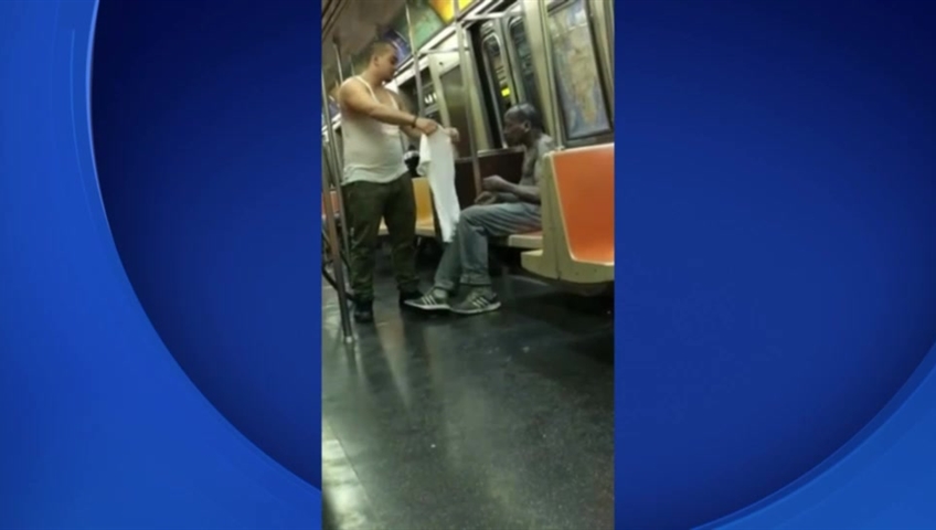 A New York City good Samaritan actually gave the shirt off his back to a homeless man while riding on a Manhattan subway train.