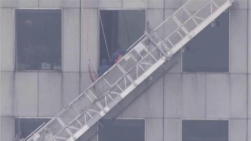 Television images showed at least two workers trapped on the rig dangling 71 storeys above the ground, according to NBC news.