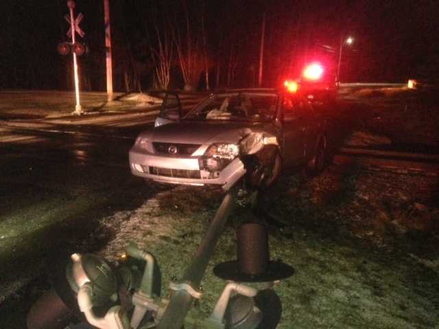 A 22-year-old man was arrested and accused of driving impaired and crashing into a railway traffic signal post in New Glasgow, N.S., on Monday night.
