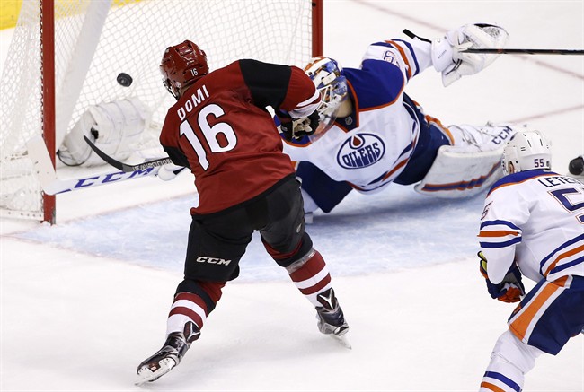 GLENDALE, Ariz. – Oliver Ekman-Larrson’s goal with nine seconds left in overtime and a hat trick from rookie Max Domi gave the Arizona Coyotes a 4-3 victory Tuesday night over the Edmonton Oilers.