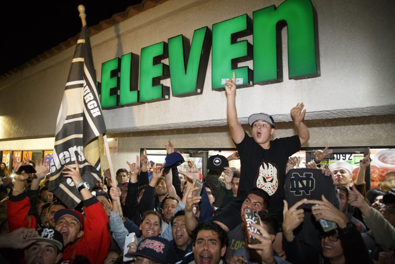 The store and its surrounding strip mall immediately became a wildly popular gathering spot in the usually quiet Los Angeles County suburb. Dozens of people from TV news crews to gawkers crowded the store and spilled into its parking lot.