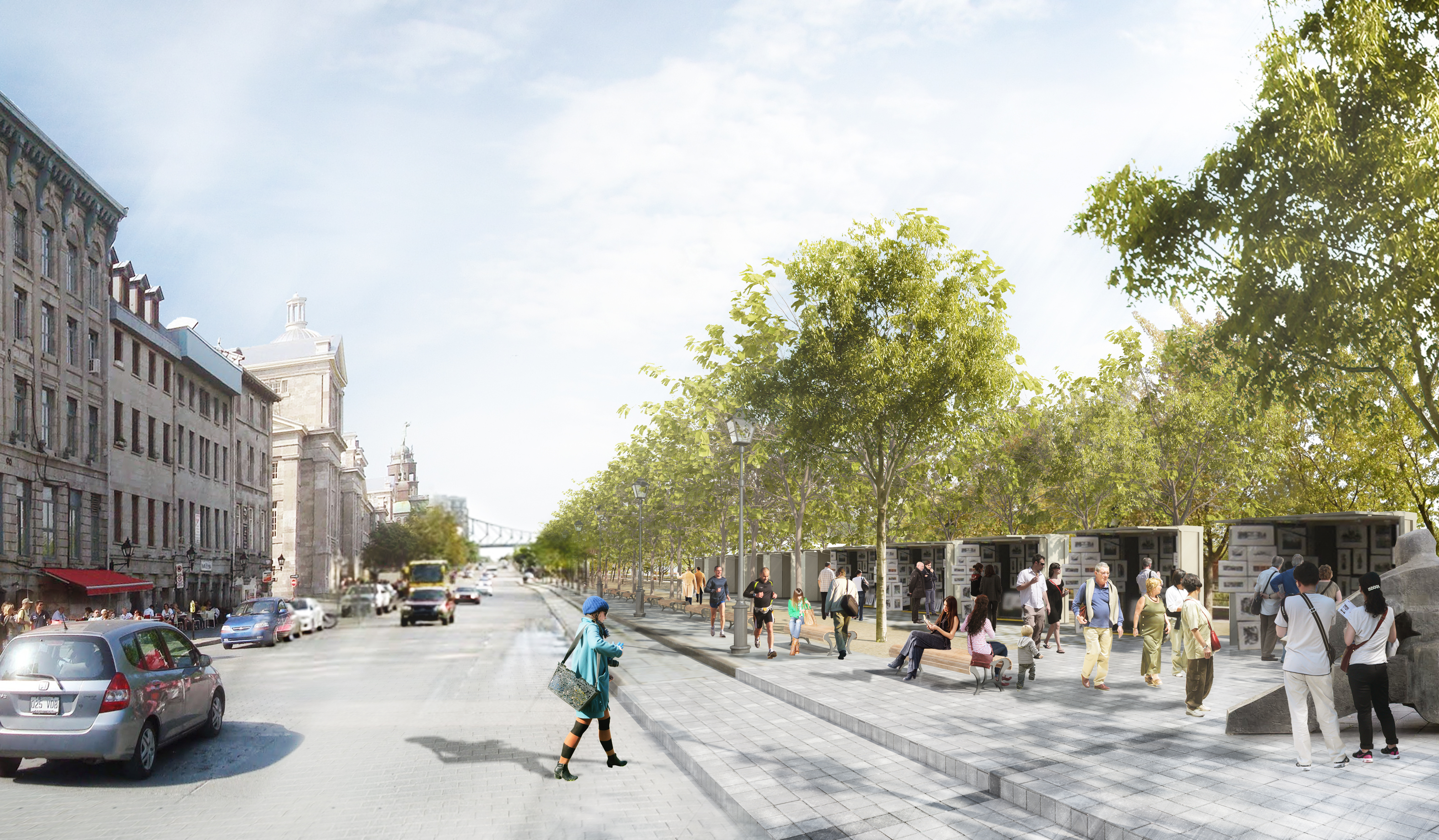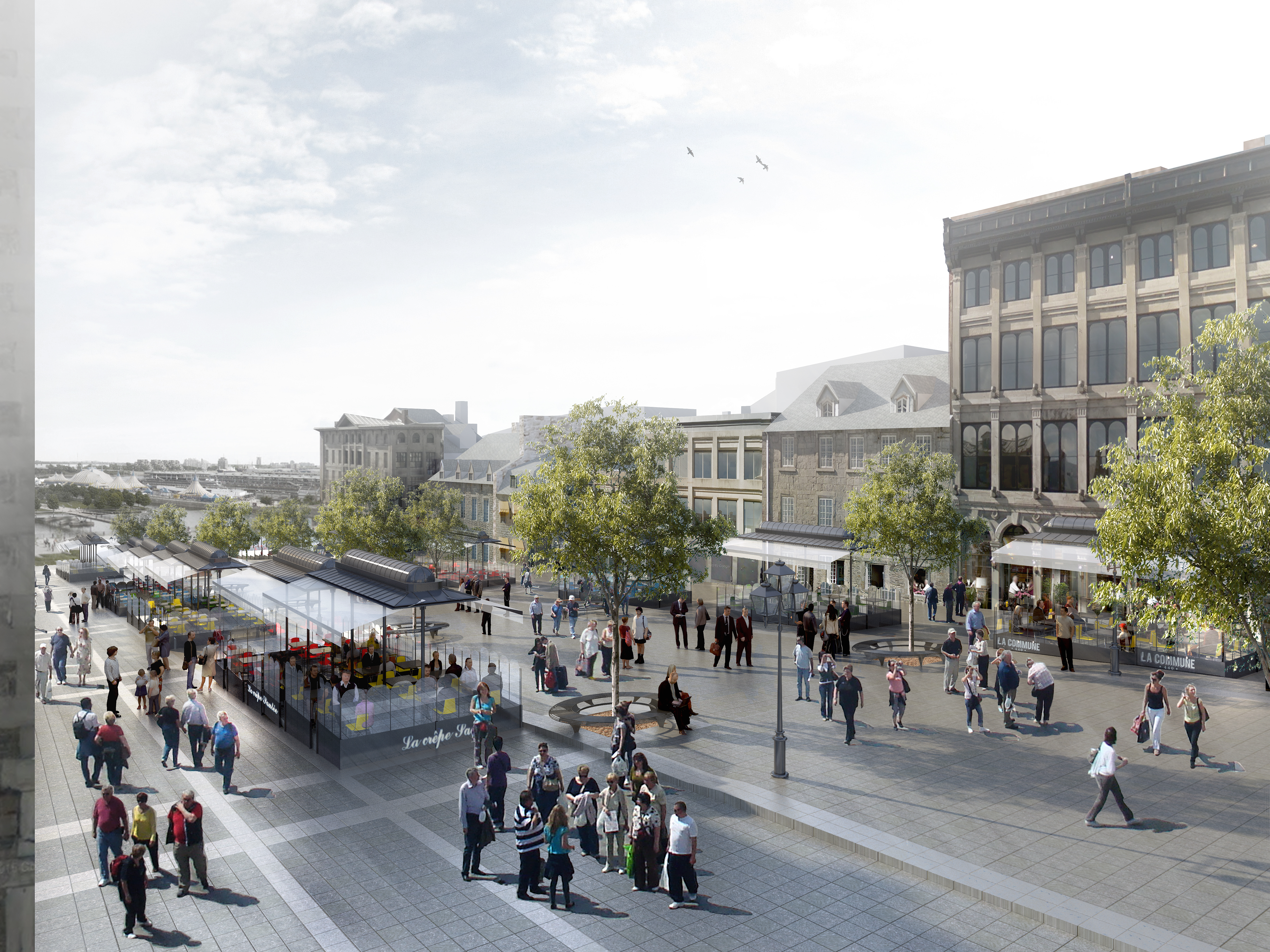 MONTREAL – Mayor Denis Coderre showed off a presentation of a revamped Place Jacques-Cartier: a new promenade for artists, new structures – and heated outdoor seating.