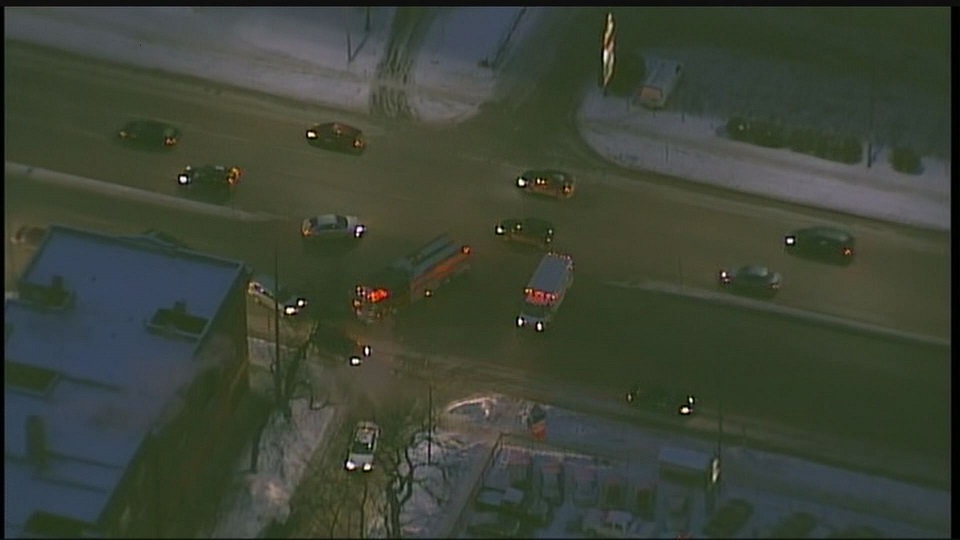 A pedestrian was sent to hospital in stable condition.