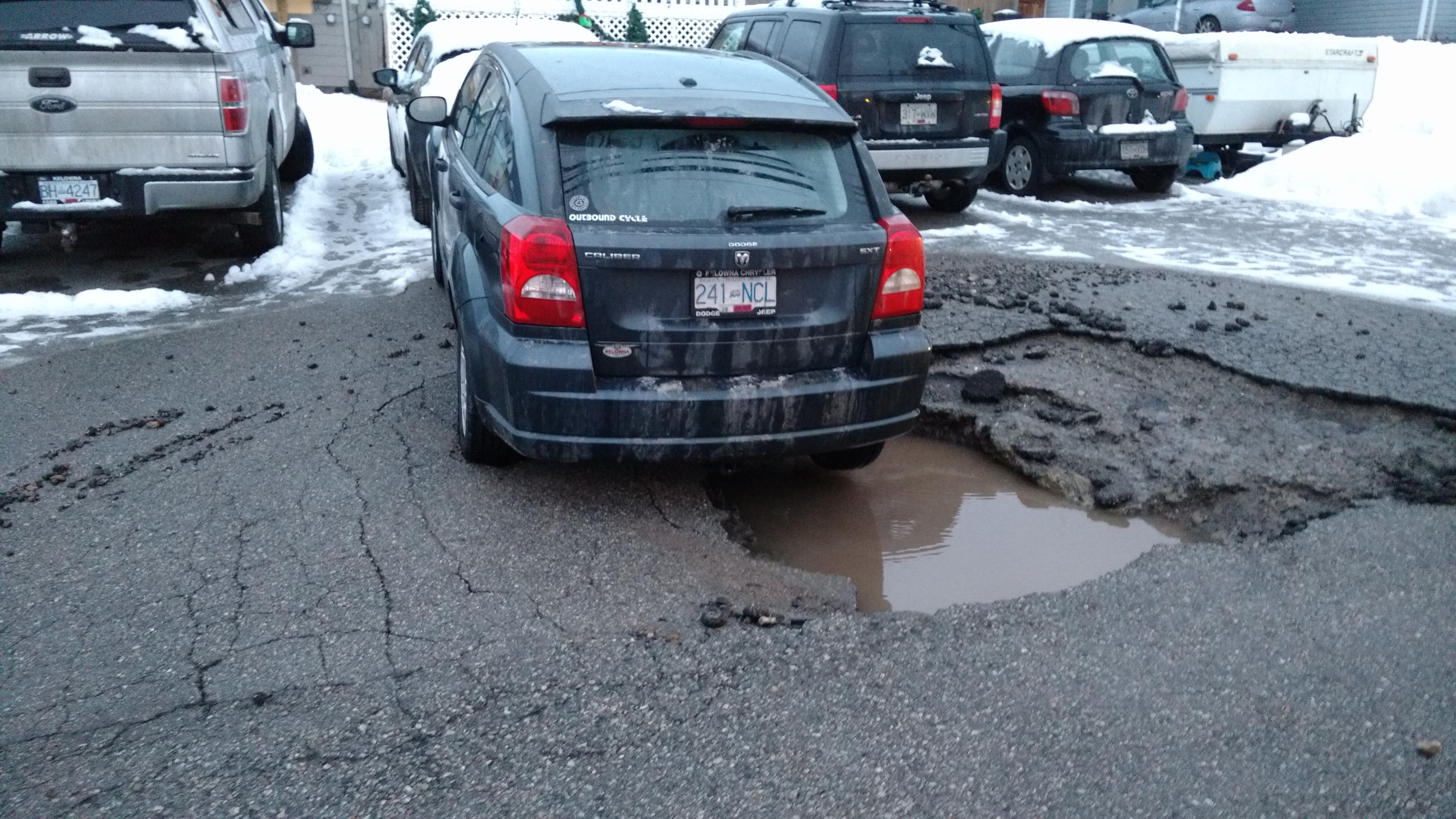 “I came out and the car was sunk down in the hole. We’ve got to take it to the shop. The brakes are all filled with gravel.”