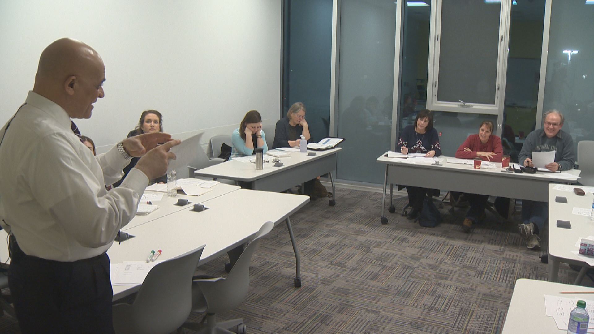 He teaches one of three classes, made up of 14 students each, Tuesdays and Thursdays for a month-long period that began last week.