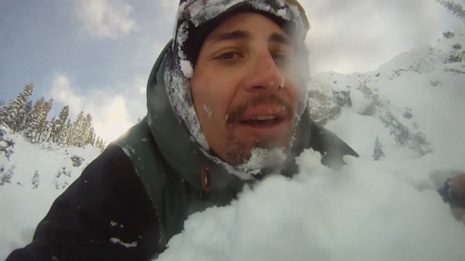 Mares’ head cam recorded the harrowing experience from inside the avalanche, as he struggled to stay at the surface.