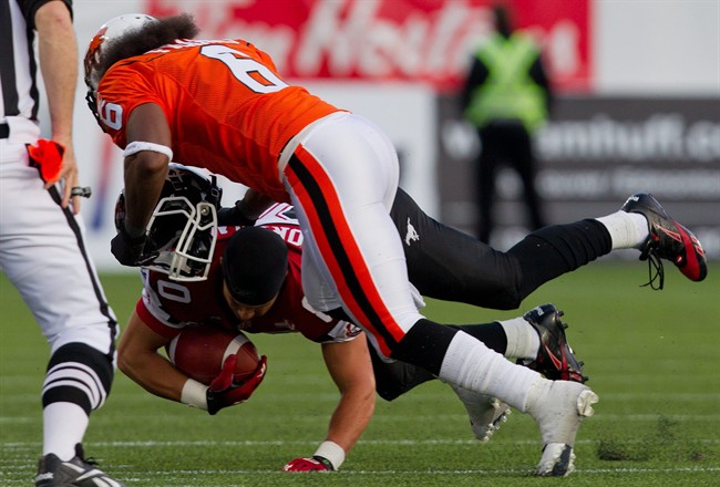 Former B.C. Lion Angus Reid, is helping develop and promote new technology that he hopes will reduce the number of concussions in football. Reid says the technology, called BrainShield, is developed by Shield-X Technology and SFU researchers and is the world’s first functional helmet decal. The decal can be attached on to a helmet, like a sticker or team logo. The decals can also be placed on different kinds of helmets, including those used by cyclists. The decal consists of four layers of micro-engineered product that diverts angled impacts.